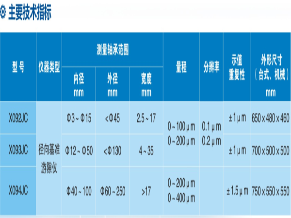 公司生產的X09系列軸承徑向游隙測量儀為無負荷動態(tài)高精密測量儀器,測值為成品軸承徑向游隙平均值,是軸承行業(yè)成品軸承測量游隙的標準儀器。